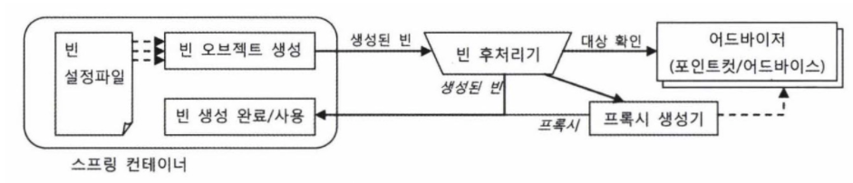 이렇게 간단하게 빈후처리기와 어드바이저를 빈으로 등록하기만 하면 된다. 이러면 등록된 모든 빈에 대해 모든 어드바이저가 적용되고 포인트컷의 조건에 반족한 빈은 그 어드바이저의 포록시 기능을 포함하여 빈으로 생성된다.