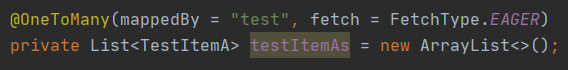 Test엔티티와 TestItemA엔티티는 1:N관계를 양방향을 맺고 있다. 이때 Test엔티티를 전부 조회한 경우를 생각해보자. (참고로 여기선 Test의 컬렉션이 List<TestItemA>하나로 join fetch가 가장 적절한 해결책이다)