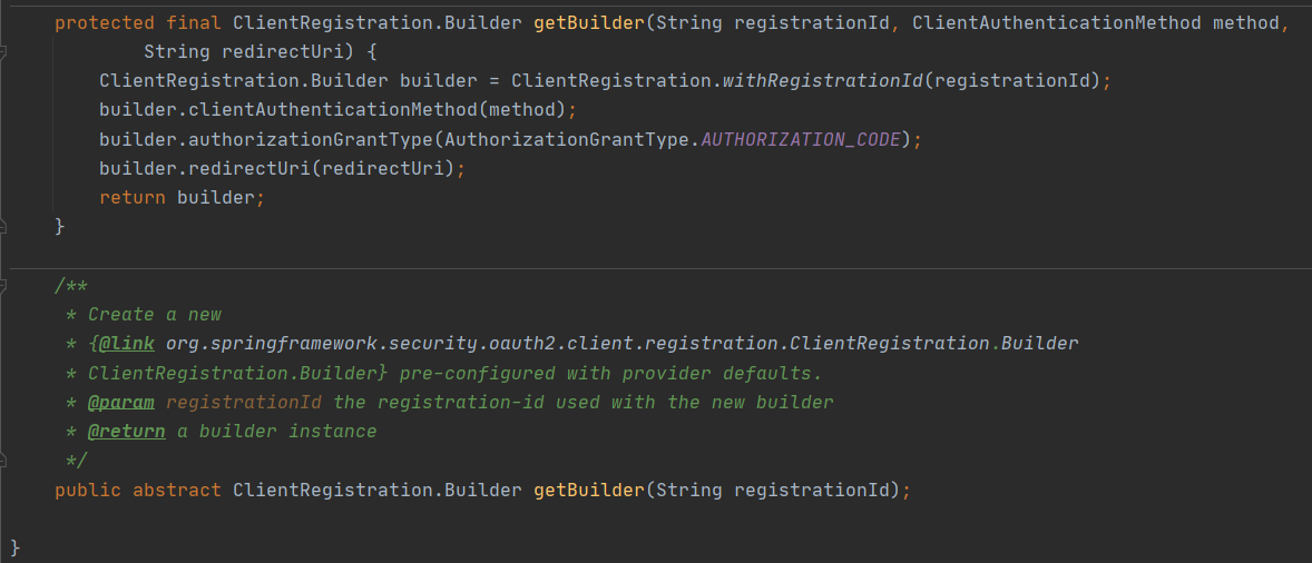 위와 같이 Provider를 통해 ClientRegistration을 만들어 등록할 수 있지만 예제가 직접 ClientRegistration을 만들어 등록했으므로 동일하게 등록하겠다.