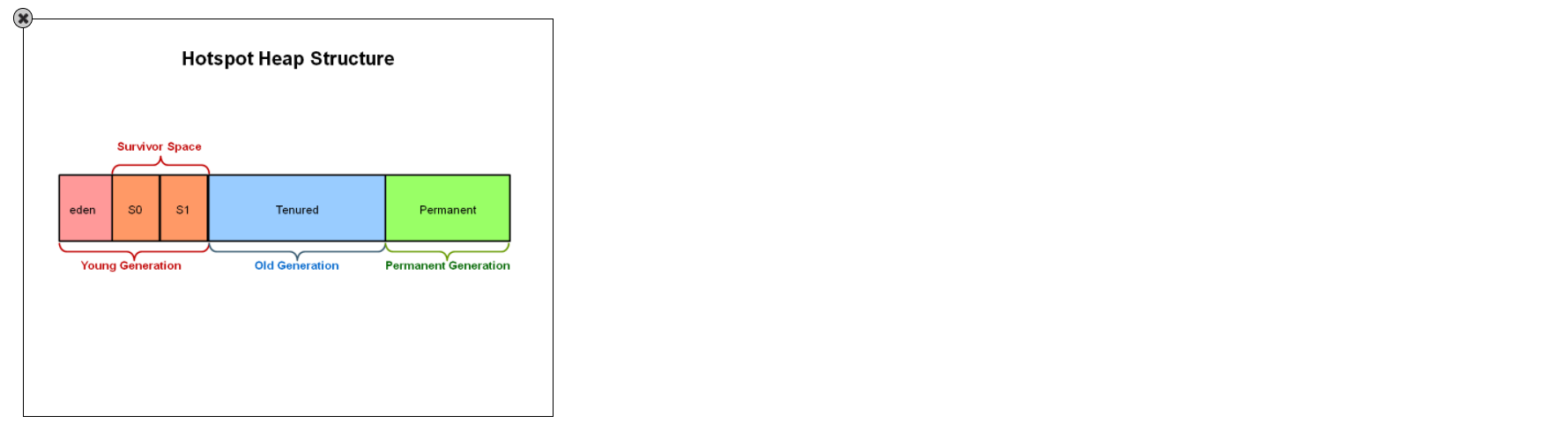 위 사전정보를 바탕으로 JVM의 Heap영역은 Young, Old, Permanent 이렇게 3가지로 나뉜다.