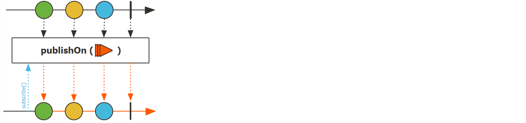 이후 수행할 publisher의 모든 작업을 새로운 스레드에 할당하여 처리하게 한다. publisher에서 아예 새로운 스레드가 생성되기 때문에 일반적으로 publisher의 작업이 느린 경우 사용한다.