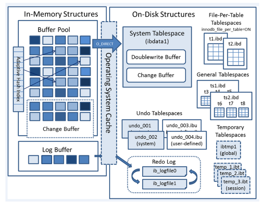 - InnoDB 버퍼 풀 지원 : 데이터와 인덱스를 모두 캐싱하여 쓰기 지연을 통한 배치 작업으로 성능 개선