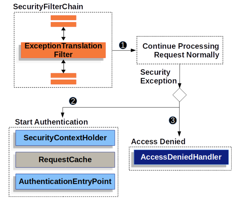 security의 ExceptionTranslationFilter는 예외를 처리하는 필터다. 이전 filter에서 요청이 인증 또는 인가에 실패하게 된다면 throw를 이용해 Exception을 던지게 된다. 이때 이 Exception을 처리하기 위해 등록한 AccessDeniedHandler를 작동시킨다.
