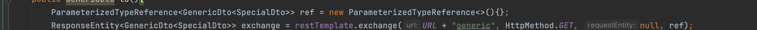 AnonymousClass extends ParameterizedTypeReference<GenericDto<SpecialDto> {} ...즉, 위 코드블럭에 나온 AnonymousClass를 리플랙션해야 정확하게 GenericDto속 SpecialDto까지 알아낼 수 있는 것이다.
